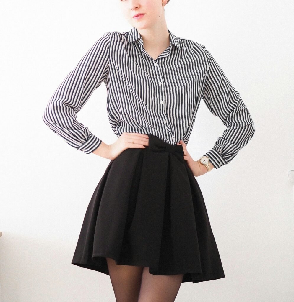 - Oversized shirt + slim skirt
